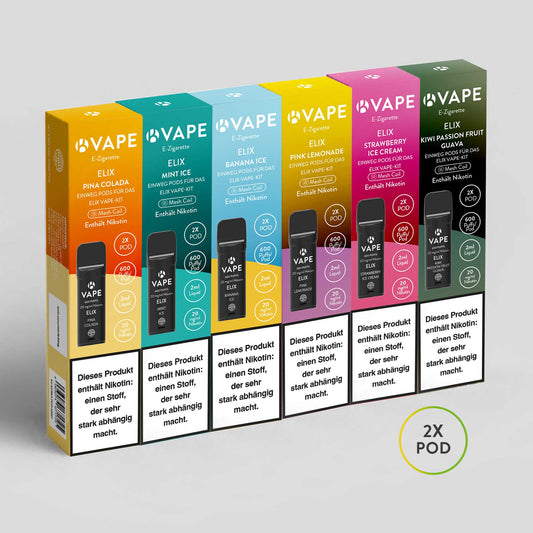E-Zigarette K-Vape Elix - 2x Nachfüllpods 6-er Pack All TastesAnbieter:K-VapeNormaler Preis 40,00 €Normaler PreisGrundpreis / pro0,01 €Verkaufspreis 40,00 €